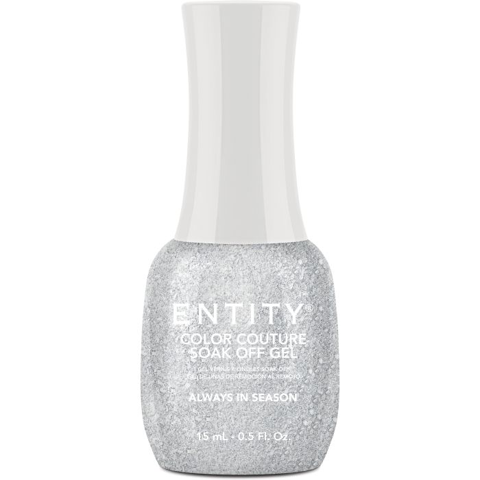 Entity Color Couture Soak-Off Gel Enamel Always In Season, 0.5 fl oz. SILVER METALLIC WITH CHUNKY GLITTER